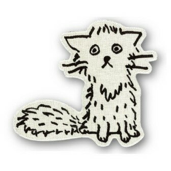 【メール便・ポスト投函便OK】 アイロンワッペン&シールワッペン(両方兼ねてます)布生地やノートや手帳に貼れる可愛い刺繍のワッペン(パッケージの台紙サイズ85×53mm)白猫 手足耳黒
